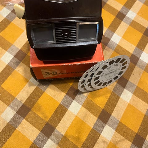 View-Master stereoskooppi. Materiaali muovi, väri ruskea, kunto hyvä, käytetty, ehjä.