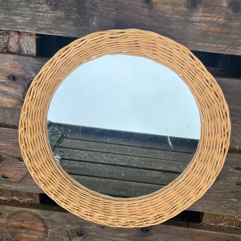 Myydään rottinkinen seinäpeili. Kehyksen kanssa halkaisija n. 48cm. Nouto Lielahti.