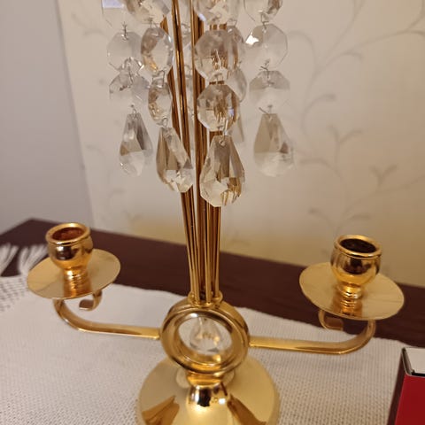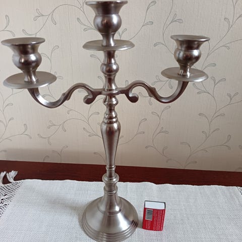 Metallinen kynttilänjalka, jossa koristeellinen muotoilu ja kiiltävä pinta. Kynttilänjalka on suunniteltu yhdelle kynttilälle ja sen pohjassa on pehmeä materiaali, joka suojaa alusta. Korkeus 16 cm ja pohjan halkaisija 11,5 cm. Hinta 9 euroa. Voin lähettää. Mmm.