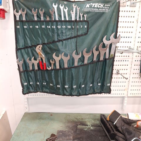 Millin välein kaikki koot väliltä 6-19. Työkalut kuin uusia, telineessä vähän sanomista.