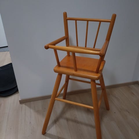 Puinen syöttötuoli tai korotettu tulo isommalle lapselle. Saa käännettyä pöydäksi ja tuoliksi isommalle.