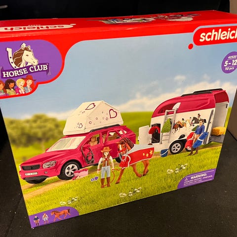 Schleich horse clubin seikkailu autolla ja hevoskuljetusvaunulla. Erinomaisessa kunnossa oleva setti, muuten mutta alkuperäinen satula on vaihtunut toiseen. Muuten kaikki settiin kuuluvat osat mukana. Hintaan lisätään mahdolliset postikulut.