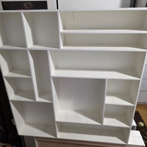 Hyväkuntoinen hyllykkö. Muutamia pieniä naarmuja tasoilla, mutta ei näy käytöstä. Kaunis huonekaluja, mutta ei ole löytänyt paikkaa nykyisessä kodissa.