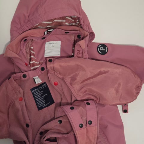 Yhden pääasiassa rattaissa pitämä Polarn O. Pyret weather pro kuorihaalari, jossa irroitettava fleecevuori. Haalari on erinomaisessa kunnossa, polvissa ja pesussa ei ole kulumaa, jalkalenkit ovat ehjät. Pesty kahdesti. Huppu hieman pehmentynyt. Savuton ja eläimetön koti.