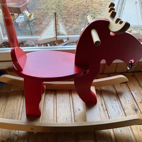 IKEAn keinuhirvi. Vähän käytönjälkiä (katso kuvia) mutta yleisilme hyvä.