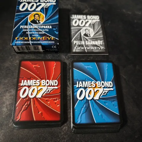Casino Royale pelikorttipakka, jossa on useita pelikortteja. Kortit ovat perinteisiä pelikortteja, jotka liittyvät James Bond Casino Royale -elokuvaan.