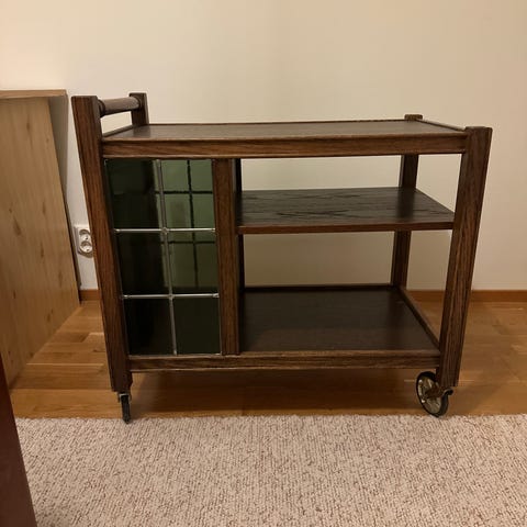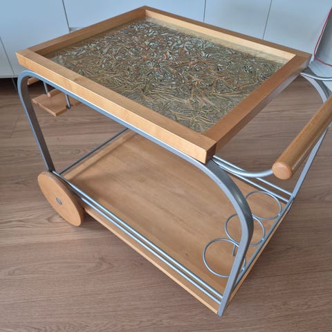 Myynnissä retro tarjoulupöydän runko. Lasit hajonneet, mutta uudet voi varmasti tilata jostain. 42,5cm säde laseille.