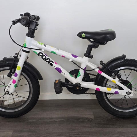 Uusi käyttämätön Frog Bikesin alkuperäinen seisontatuki, joka soveltuu 14" ja 16" pyörille. Tarkoitettu uudemman mallisiin Frogin pyöriin, joissa takahaarukassa on kiinteä paikka asentaa jalkatuki. Mukana tulee tarvittavat ruuvit.