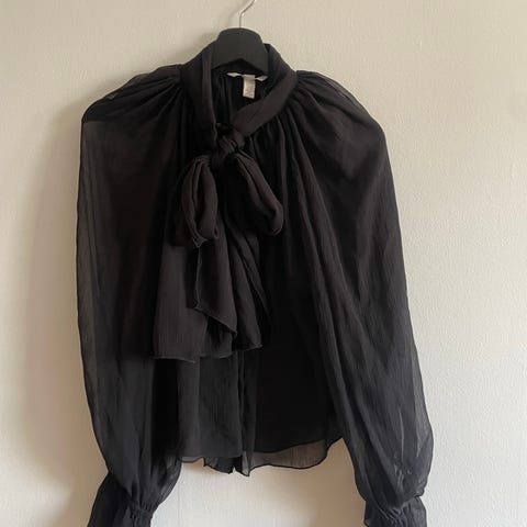 Myydään naisten kermanvärinen, läpikuultava pusero, jossa kauniit brodeerattu kuviot. Koko S, H&M.