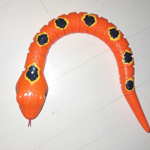 Myydään hyvässä kunnossa oleva interaktiivinen robo alive käärme paristoilla. Tämä robottikäärme liikkuu melkein kuin oikea käärme. Silmät näyttävät realistisilta ja siinä on kieli, joka lepattaa. Toimii ja liikkuu.