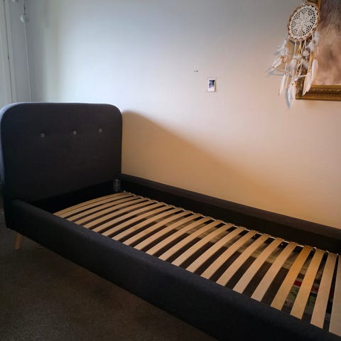 Myynnissä uusi Jyskin Kongsberg 180 × 200 cm beige kangassänkykehikko, jota on ehditty käyttää vain muutaman kerran. Myydään pois tarpeettomuuden vuoksi. Muuten kaikki kunnossa ja siisti.