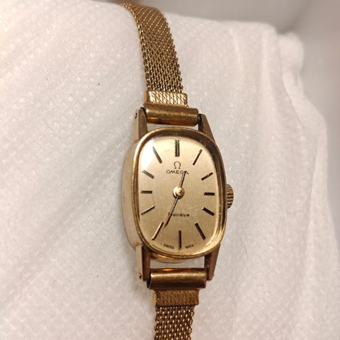 Women’s Omega hand-wound watch in excellent condition. A genuine vintage piece with its original crown and Omega leather strap. Comes with the original Omega box and an additional brown Omega strap. A lovely Christmas gift! Selling because I have too many watches. 🫠