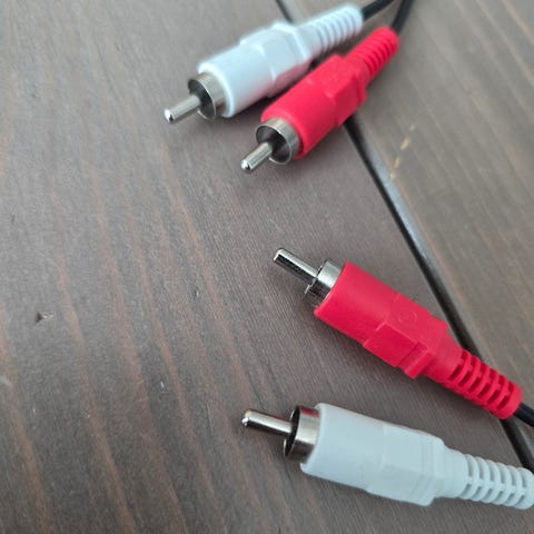 Kolme RCA urosliitintä (valkoinen, punainen, keltainen):