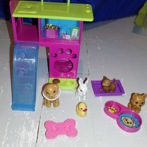 Setti Barbien koiria. Oikeanpuolimmainen ei ole Barbien, oletan. Vatsassa lukee Vietnam. Laadukas muttei mielestäni Schleichikaan?
