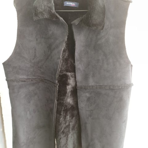Uudenveroinen, käyttämätön Stockmann Global Sport keinoturkisliivi. Pintamateriaali aidon tuntuista mokkanahkaa, mutta on keinomateriaalia, sisäpuoli pehmeää karvaa.