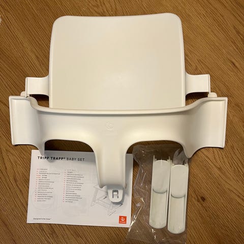 Hyväkuntoinen Stokken tripp trapp syöttötuoliin sopiva baby set.