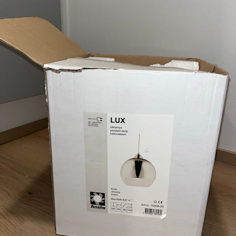 Ennen muinoin omassakin huoneessa toiminut lampunvarjostin. Max 60w lampulle ja helppo lisätä töpseli jos ei sokeripalalla tahdo kiinnittää