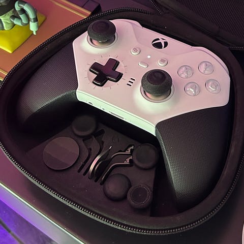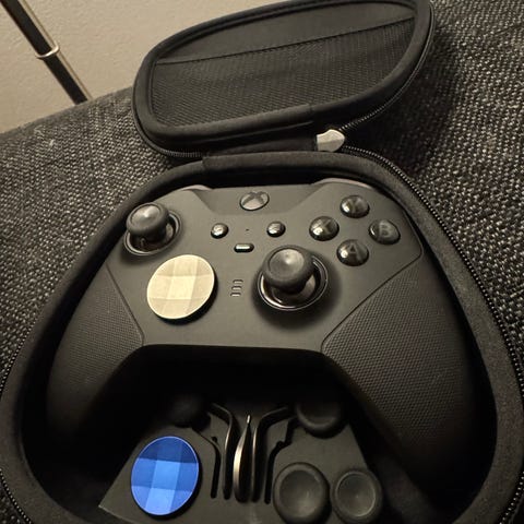 Xbox Elite Wireless Series 2 peliohjain musta. Mukana kuljetuskotelo, vaihdettavat ohjaimet ja lisävarusteet. Sopii Xbox-konsolille.