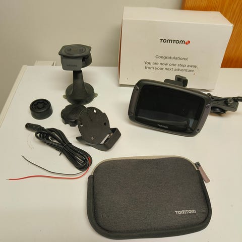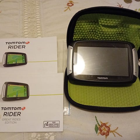 Täysin toimiva, vuosia käyttämättä ollut, MP navigaattori. Kartat SD korteilla - länsi-/ja itä Eurooppa. Tom Tomin verkkosivulta löytynee ohjeet uusiin karttapäivityksiin/karttohin. Itse Tom Tom toimii ja on hyvässä kunnossa. Mukaan autolaturi, ylim uusi paristo, MP-teline, verkkolaturi, USB-johto, kypärään asennettava kuuloke ja bluetooth-laite sekä tuotekortti. Myyn tarpeettomana kun en enää harrasta moottoripyöräilyä.