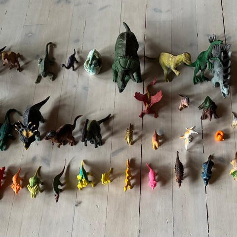 Myydään dinoja, 5 € pussi, kaikki 15 €