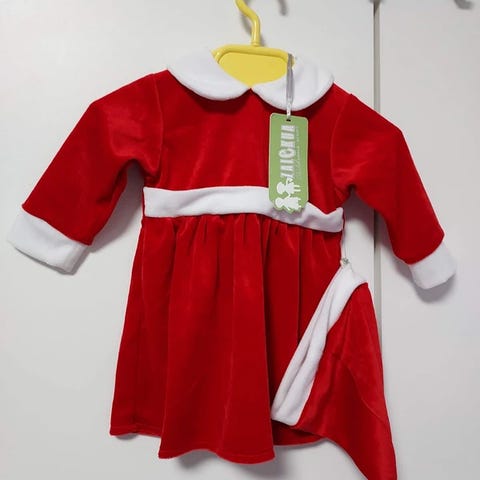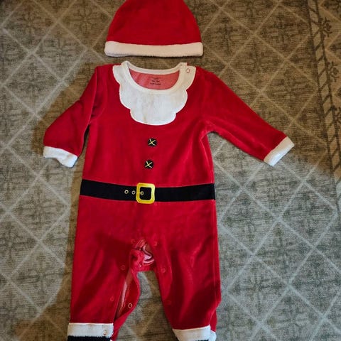 Tästä pienokaiselle ihana tonttupuku koossa 68 cm.