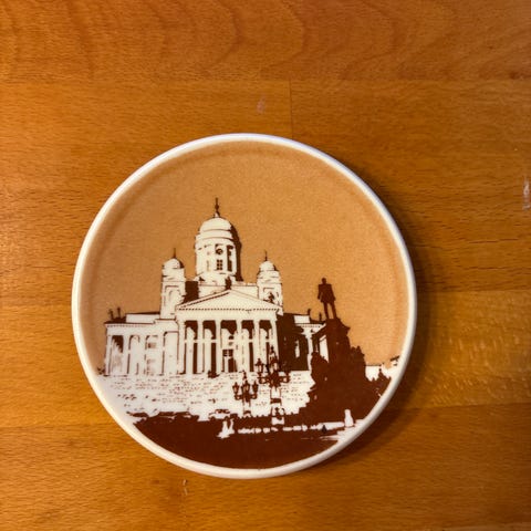 Arabian Helsinki aiheinen seinälautanen Esplanadinpuisto ja Kappeli. Lautasen on piirtänyt Veikko Roininen. Lautasen halkaisija on 19,5 cm. Kunto on erittäin hyvä. Toimitus onnistuu myös postitse kuluja vastaan. Osta vaikka joululahjaksi.