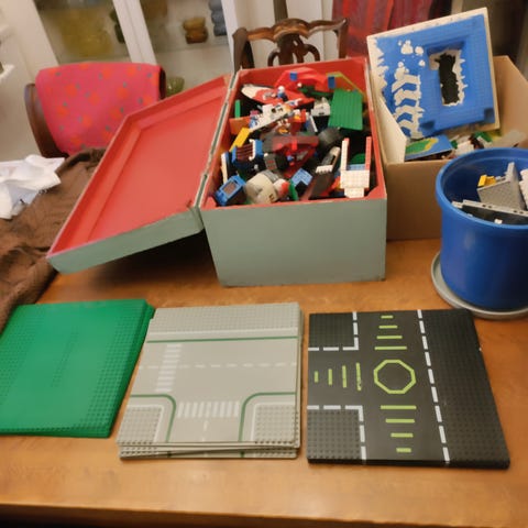Läjä vintage legoja. Mm. 1978 Shell asema.