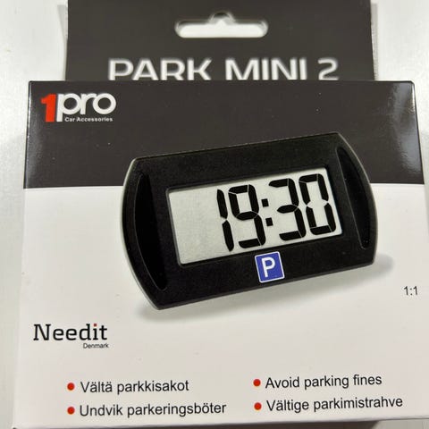 Park Micro digitaalinen parkkikiekko, jossa on selkeä näyttö ja automaattinen ajan asetus. Laite on suunniteltu helpottamaan pysäköinnin ajan merkitsemistä ja soveltuu useimpiin ajoneuvoihin. Pakkaus sisältää parkkikiekon ja käyttöohjeet.