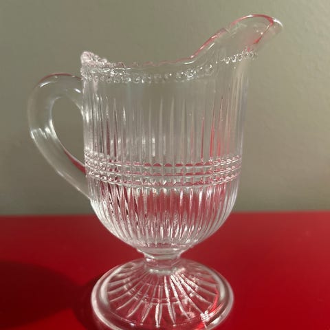 Kirkas lasinen kermanekka 40-50-luvulta. Korkeus 6 cm, halkaisija 7,5 cm. Priima kunto. Nouto Veräjämäestä tai voin lähettää Toridiilillä.