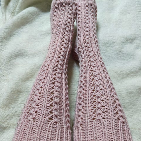 Käsintehdyt villasukat pitsineuletta