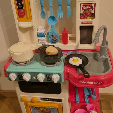 Leikkikeittiö + leikkiruokia ja astioita