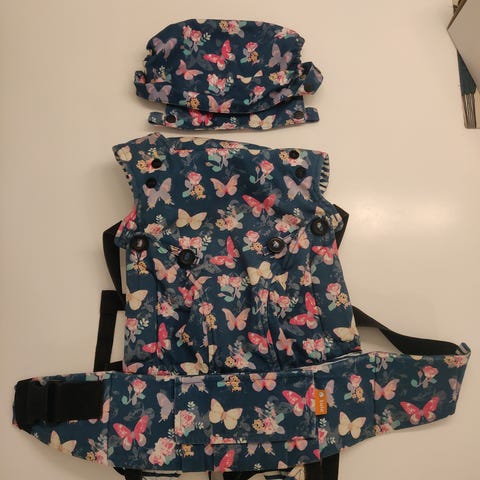 Hyväkuntoinen Tula explore kantoreppu, ostettu käytettynä, ei ollut meillä käyttöä. Lasta voidaan kantaa kolmessa eri asennossa.