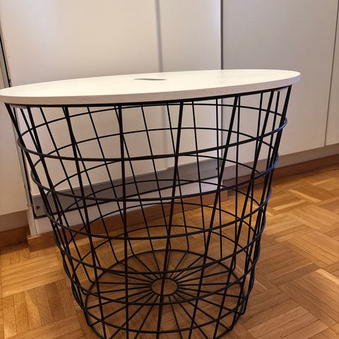 Ikean sohvapöytä, metallinen runko, lasinen kansi. Hyvässä kunnossa, ei juuri näkyviä käytön jälkiä.