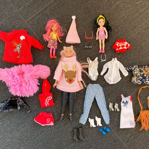 Vähän leikitty Ken, Barbie ja tyttölapsi (tekninen Barbie) Ja kaikki vaatteet/kengät mitkä kuvissa on