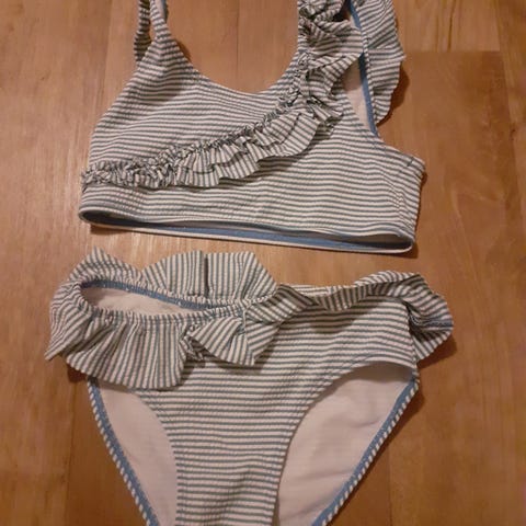 Kuvissa näkyvät tyttöjen uimavaatteet H&M. Koko 122-128 cm. Kunto moitteeton.