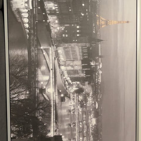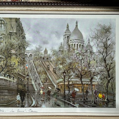 Hieno Pariisi aiheinen taulu. Kehykset ovat kuluneet tyyliin sopivasti.