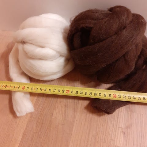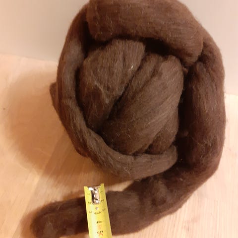 Tämän "kerän" paino n. 700g. Voin myydä pienemmän tai isomman määrän tarpeen mukaan. Löytyy myös värissä natural brown. Suomessa myynnissä n 55€/kg.