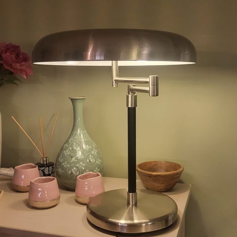 RARE Vintage IKEA Grimsö Atomic Mushroom Table Lamp | Collectible Space Age Steel and Leather UFO Lamp Modern Art Deco