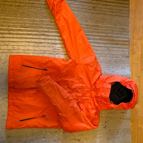 Quicksilverin laskettelutakki (koko 12 Y) ja Five Seasons -housut (146/152). Takissa kaikenlaista lumilukkoa ja säätöjä (ks. kuva 2). Takki muuten erinomaisessa kunnossa mutta huppu puuttuu ja lisäksi parin millin viilto helmassa (ks. kuva 3). Ei pesty. Housut enemmän käytetty, näissä vedenkestävällä vaatelaastarilla paikattu reikä takapuolessa. Huomioitu hinnassa.