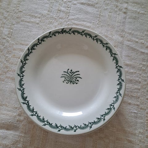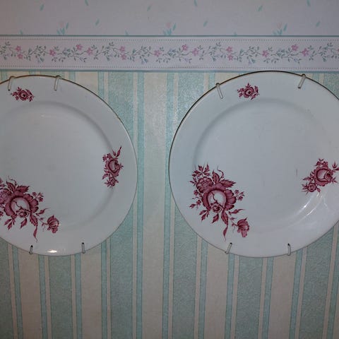 Arabia AS-malli lautaset, joissa on sinisiä ja oransseja kukkakuvioita. Kulumaa ja ajan patinaa löytyy. Matalia ruokalautasia yksi, samoin syviä.