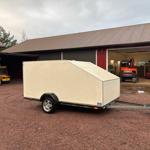 Uudenveroinen jarrullinen kaappikärry 1800mm sisäkorkeudella. Sivuovi, normaalia korkeampi sisäkorkeus (180cm), LED-valot sisällä, kippiruuvi, ajoluiska, alas laskeva takaovi, 6kpl sidontalenkkejä. Kantavuus 1000 kg, omamassa 500 kg, kokonaismassa 1500 kg. Pituus 4000mm, leveys 1850mm. Uusi 8700€, nyt 6700€ (Sis. ALV), veroton hinta 5339€.