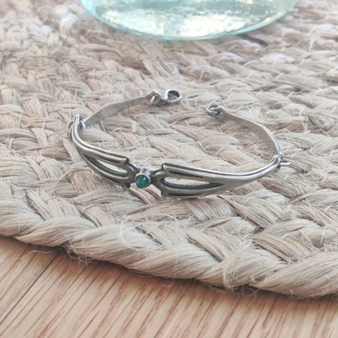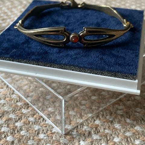 Kaunis Jugend tyylinen rannekoru. Punainen karnioli kivi koristeena. Koko 19 cm.