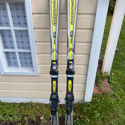 Myydään Rossignolin Power 9 Pro -laskettelusukset Rossignolin 80 Equipe -siteillä.