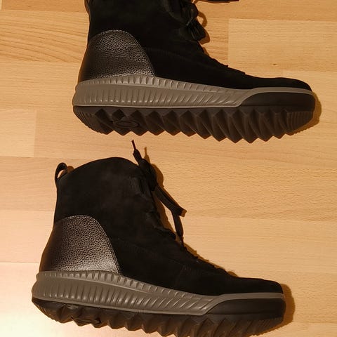 Mustissa nilkkureissa on kontrastivärinen logo sivulla.