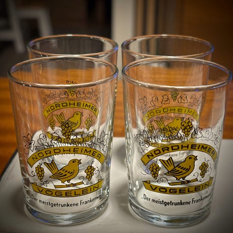 Horoskooppilaseja kuusi kappaletta. Lasit ovat läpinäkyvää lasia ja niissä on erilaiset eläinhahmot sinisellä taustalla. Hinta yhteensä 5 euroa.