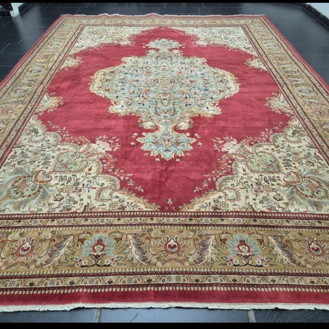 #98 Käsinsolmittu itämainen retro vintage villamatto olohuoneen matto persialainen