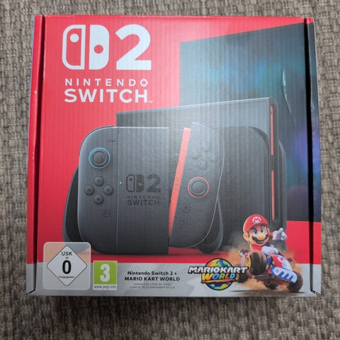 Ylimääräiseksi jäänyt uusi konsoli avaamattomana paketissa, Mario Kart valmiiksi mukana. Erinomainen lahjaidea jollekin.