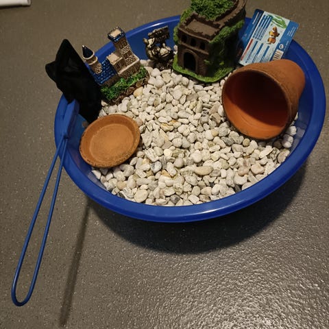 Kelluva akvaariokoristekivi. Kiinnitetään pohjaan imukupilla. Kunnoltaan siisti, meillä vaan ei löydä paikkaansa. Mukaan saa vaihtonarun ja imukupin.