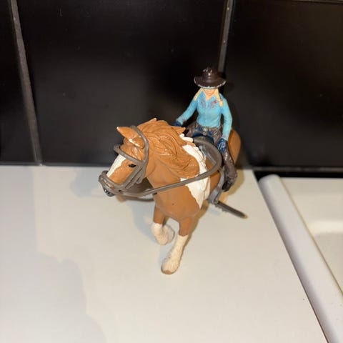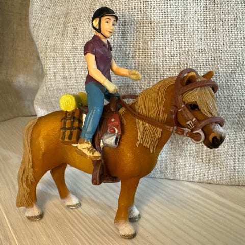 Myydään ratsukko Siiri ja Sissi. Siirissä kulumaa varpaissa, kantapäissä, sormissa, hiuksissa ja lipassa. Sississä näkyy jonkun verran kulumajälkiä. Satula ja suitset hyvässä kunnossa. Nouto tai posti. Yhdistelen posteja ja postitan viimeistään seuraavana päivänä.