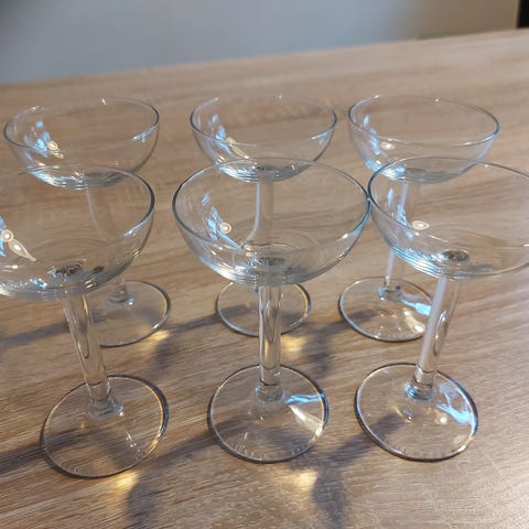 Snapsilasit, 7 kappaletta. Lasit ovat kirkasta ja osin huurrettua lasia, joissa on painettuja logoja. Hinta 5 euroa yhteensä.